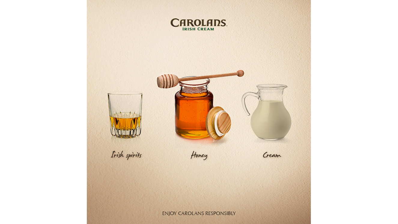 Carolans es un licor irlandés el cual combina un fino whisky Irlandés con crema fresca y miel natural, su sabor superior a otras cremas de whisky es por su sutil mezcla de sabores.