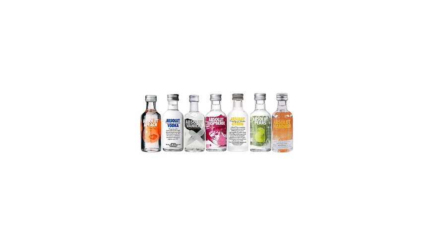 Miniaturas Absolut Vodka 40° 7 unidades, 7sabores diferentes 50 ml ideal para tu colección