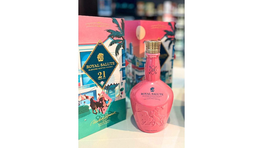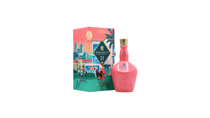 Royal Salute 21 Miami Polo Edition es un whisky escocés ultra premium de edición limitada, creado para rendir homenaje al arte del polo y a la energía única de Miami. Esta mezcla exclusiva de maltas envejecidas durante al menos 21 años ofrece una experiencia sensorial sofisticada y vibrante.